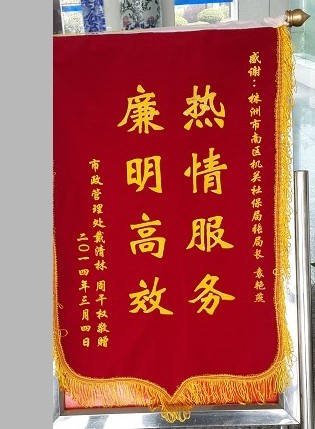 “感谢你们,感谢政府!”3月5日上午,来自市政管理处的戴清林、周干权将一面印着“热情服务,廉明高效”的锦旗送到芦淞区机关社保局局长张辉霞及工作人员袁艳燕手中,对芦淞区机关社保局工作人员优质高效、热情服务的行为表示感谢。
