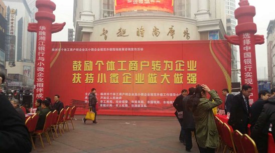 为了鼓励、引导个体工商户向现代企业方向转变,推进小型微型企业创新发展、集约发展,促进全市非公经济发展和经济转型升级,打造株洲经济发展升级版,2014年1月3日上午在智超前坪广场举办了一场“个转企”“小升规”的集中宣传会。市工商局、市经信委、市商务局、市国税局、市地税局、市统计局、市人社局、市消防支队和芦淞区人民政府均在现场设立咨询点,为广大个体经营户进行现场答疑解惑,诸多经营户前来咨询,宣传效果甚佳。株洲市常务副市长王志刚在芦淞区常务副区长刘海滨的陪同下到现场进行慰问,了解“个转企”、“小升规”的进展情况,并对各咨询点工作表示高度赞扬。