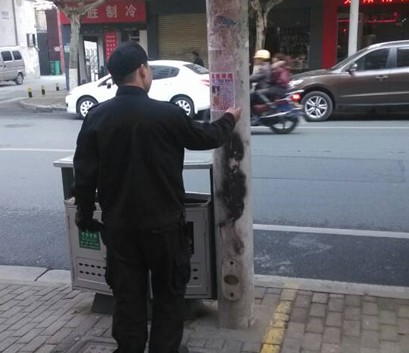 屡禁不止的“牛皮癣”,是城市市容的大敌之一,芦淞城管队员在路面巡查经常会看到电线杆上、临街墙面上被贴上了“牛皮癣”。为有效消除这些恼人的“牛皮癣”,芦淞城管队员在路面巡查已经养成“随见随除”的习惯,巡逻过程中只要发现有“牛皮癣”,我们的队员便会主动将它们清除掉。