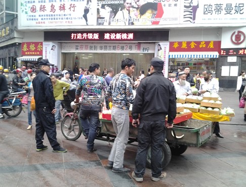 芦淞服饰市场群商贾云集,流动摊贩相对城区其它主干道显得特别集中,尤其以少数民族摊贩居多。为有效遏制愈演愈烈的少数民族占道经营局面,大队在确保稳定的前提下,定期组织各片区力量进行了集中整治,收效较好,但仍需要中队一如继往加强力量进行监管控制。为此,市场群中队在大队整治的基础上加大力量进行严格管控,克服人员少、工作任务重的困难,对市场群各重要路口(如保育巷口、汇金巷口、银谷巷口等)少数民族占道经营行为进行劝导教育,加以督促整改,采取多措并举,及时劝导、疏散少数民族摊贩堵塞路口的违章行为。