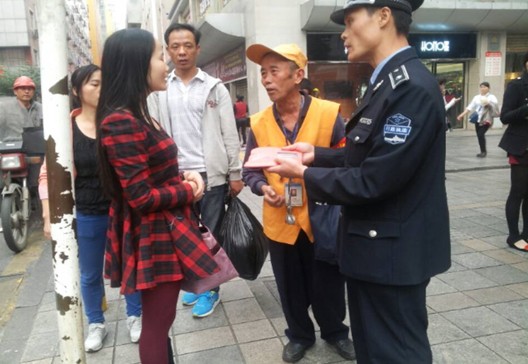 经过多方努力,最终通过票据上的电话,联系上了失主。失主找回到失而复得钱包后,连声道谢,称赞城管监督员是社会的好榜样。