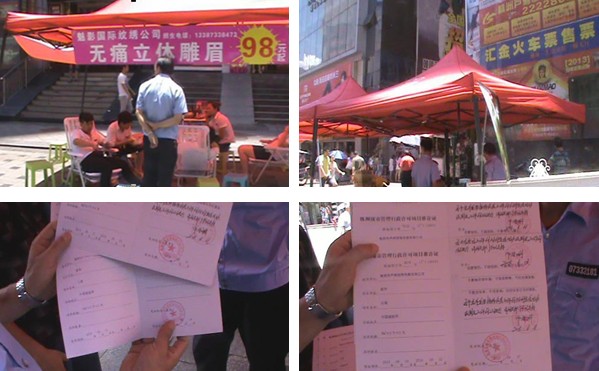 据市民反映每到周末,芦淞市场群就有很多商家占道进行促销活动,严重影响市民通行。2013年8月17日中午,空档班队员在中队长范长武带领下,对在芦淞市场群设立的促销点进行检查,要求在此进行促销活动的商家提供株洲城市管理行政许可证,对没有取得行政许可私自设点促销的商家,要求其立即清场离开;对取得行政许可的商家,执法队员对他们促销活动进行统一规范,要求这些商家不得过度占道影响通行,整治效果改善明显。