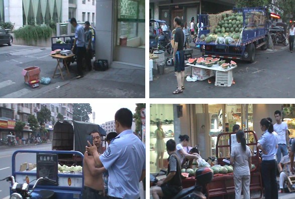 夏季,城市大街小巷随处可以见贩卖西瓜的商贩,这些西瓜商贩在人行道上随意摆摊设点,严重影响城市市容环境。前期芦淞城管大队已经开展多次针对西瓜商贩的整治行动,取得较好的效果,但目前西瓜商贩随意摆摊设点现象又有反弹趋势。8月17日,空档班队员在中队长范长武带领下,对芦淞区域内西瓜商贩乱摆乱放经营现象进行整治,执法队员对西瓜商贩进行说服教育,要求他们及时改正违章行为。整治过程中,执法队员文明执法、依法执法取得很好的整治效果。