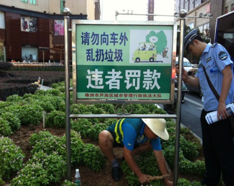 为提高市民对法律法规的认识程度,芦淞区城管大队在辖区内设立了多个遵德守礼道德提示牌,唤起市民的知法、懂法、继而守法的法律意识。这些提示牌长期日晒雨淋,字迹被灰尘覆盖模糊不清。 7月24日,芦淞区城管大队五中队队员自备抹布,水桶对管辖区内的遵德守礼提示牌进行统一清洗,并对松动歪倒的遵德守礼提示牌进行加固,希望这些遵德守礼提示牌能时刻提醒我们的市民遵守法律法规,爱护城市环境卫生。
