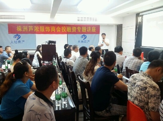近日,在大地市场16楼举行了株洲芦淞服饰商会投融资专题讲座,芦淞区市场管理局过德文局长、株洲芦淞服饰商会会长蒋和平出席讲座。