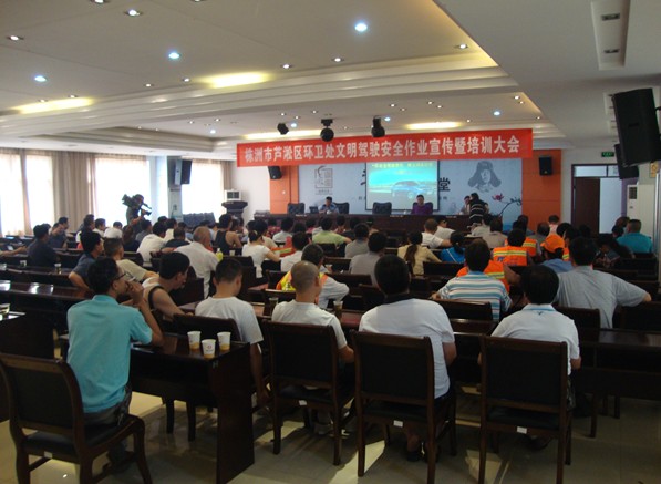 6月20日,芦淞区环境卫生管理处组织召开了文明驾驶安全作业宣传暨培训大会,特地邀请了芦淞区交警大队法宣室主任唐云现场为芦淞区10家环卫保洁公司的驾驶员及部分环卫工人进行安全教育培训。