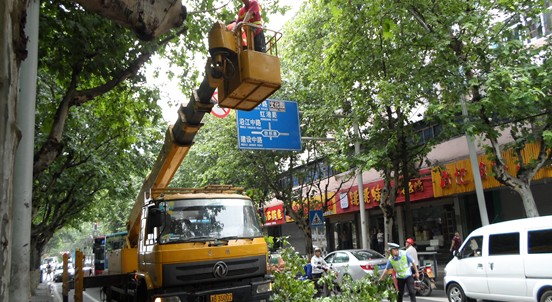 随着绿化养护工作的加强,行道树长高长大,有些树枝遮挡了交通设施,给车辆和行人带来安全隐患,为更好的迎接“国家交通管理模范城市”的复审,保障群众出行安全及交通设施的正常使用,芦淞区城建局绿化处于5月中旬、6月初分两次对遮挡道路交通设施的主次干道的行道树树枝进行修剪。