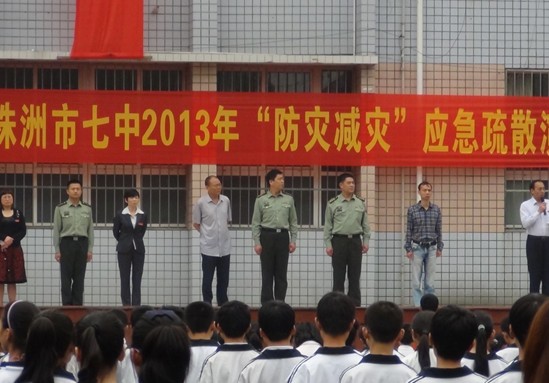 为进一步提高公众应对各类突发事件的能力,完善相关应急预案。5月10日,由区应急办牵头,区人防办承办,在株洲市第七中学举行了应急疏散演练活动。上午9:40,一阵防空警报声响起,各班主任随即带领学生用湿手帕捂住口鼻,弯着腰有序的在各楼层位置上的老师的引导下向操场疏散,学生撤离至操场后各班主任整理队伍,检查学生人数后上报学校负责人。学校其他老师和工作人员从其工作场所有秩序的紧急疏散。此次演习分两次进行在第一次熟悉路线后,确保第二次在5分钟的时间内全校师生都能集合到绿色操场。