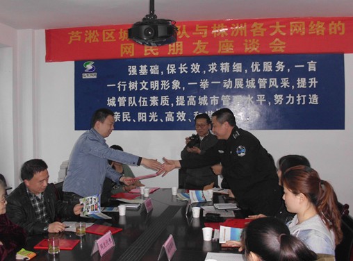 经大队研究决定,芦淞城管大队聘请12名网友和热心人士作为芦淞区城市管理行政执法大队2013年度政风行风义务监督员。芦淞区城管大队孟宪海大队长亲自颁发聘书,12名社会监督员可随时调取芦淞区36个数字城管监控探头监控录像,随时可对芦淞城管大队队员进行政风行风监督。芦淞区城管大队向社会各界表明城管执法透明管理的决心和信心。