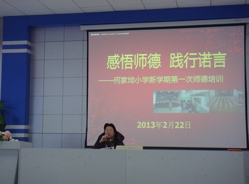 “上善若水,厚德载物”。德是一个人一生中永无止境的追求,对一个教师而言更是如此。2月22日,芦淞区何家坳小学小学全体教师齐聚多媒体教室进行师德培训。学校党支部周书记以《“感悟师德践行诺言”》为主题组织全体老师重温了《中小学教师职业道德规范》、《中小学教师从业“十不准”》,并以何小教师目前存在的师德师风问题为切入口对何小教师师德师德师风问题进行了认真的剖析,对教师的教育教学行为进行了进一步的强调。会后:全体教师向学校递交了《何家坳小学师德师风承诺书》《何家坳小学教师职业行为十不准》。