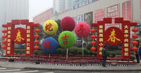 为营造新春佳节喜庆、祥和的节日气氛,芦淞区城建局于年前组织人员加班加点,进行节日气氛营造工作。通过对家润多、电信大楼、一桥桥南桥北、区政府门口、白石港桥上两侧等重要节点位置摆放造型各异的大型扎景、花墙、鲜花组合小品等形式,营造出绚丽多彩的新春景观。西洋杜鹃、红菊花、石竹、羽衣甘蓝、三色堇等五颜六色的鲜花竞相开放,“新春快乐”、“蛇年吉祥”、“美丽株洲 时尚芦淞”等主题扎景无不彰显着热烈、详和的喜庆氛围,节日的街头被装扮得分外靓丽。此次春节节日气氛营造共摆放扎景6处、花树2处、花墙1处,各类时令花卉共计6万余株。因效果突出,在城市四区的评比中夺得了第一名的好成绩。