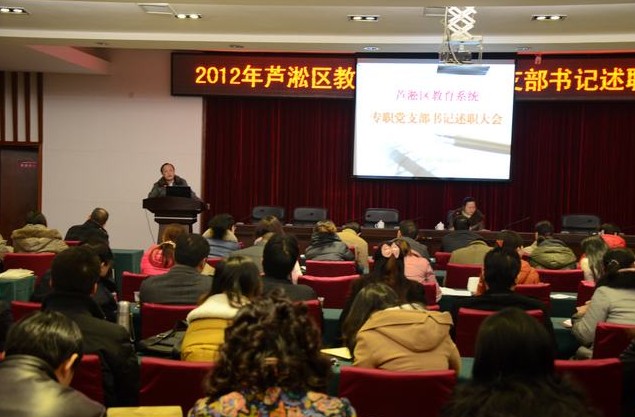 为认真贯彻落实芦淞区委“强队伍”的精神,督促基层党组织书记切实履行好抓基层党建工作“第一责任人”职责,积极开展好学习实践科学发展观、创先争优等活动,芦淞区教育局党委于1月9日上午召开了教育系统党支部书记党建工作述职大会。中小学校党支部书记20人进行了述职,教育系统党政领导班子、局机关股室负责人、中小学校校长和党员代表共计130余人参加了述职大会。会议由区教育局纪委书记徐革军主持。局党委书记夏志毅就此次活动的目的和意义发表了讲话。