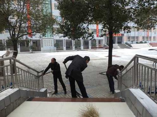近期雨雪天气持续,湖南等地出现了罕见的低温。为了确保雨雪天学校师生的安全,芦淞区各学校纷纷召开安全工作会议,进行校园内外安全隐患排查,并组织师生开展扫雪铲冰工作,用爱心融化了冰雪。