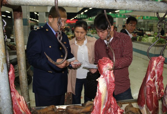 为了进一步打击私屠滥宰行为,确保城区人民吃上“放心肉”。11月1日芦淞区商务局联合区食安办、工商等部门针对屠宰病死猪、出售病害猪肉和肉类市场、食品加工和餐饮肉品等环节存在的问题开展专项整治活动。