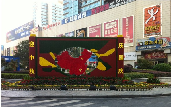 为迎接中秋、国庆双节来临,从9月25日开始,芦淞区道路绿化管理处组织人员加班加点,进行节日气氛营造工作。通过对火车站广场、中心广场、区政府门口、白石港桥等重要节点位置摆放造型各异的大型扎景、鲜花组合小品等形式,营造出绚丽多彩的节日景观。国庆菊、彩叶草、牵牛花、一串红等五颜六色的鲜花竞相开放,"中秋"、"国庆"等主题扎景无不彰显着热烈、详和的喜庆氛围,节日的街头被装扮得分外靓丽。据统计,此次摆放各类鲜花共计约20万余盆、大型鲜花扎景6组。