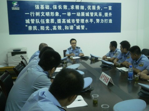 芦淞区城管大队加强队伍建设,强化队伍管理,开展组织队员培训工作,在提高队员作为上下苦功,组织队员分批进行培训﹑轮训;让有经验﹑能做事﹑会做事的城管队员带队,进行传﹑帮﹑带;老队员带好新队员。对20名新进队员及市场群管理局40名城管协管队员组织进行为期半个月的业务培训和军事训练。