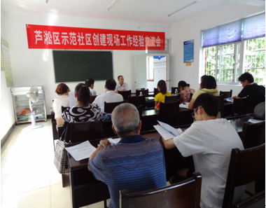 7月20日上午,曹塘坝社区,芦淞区全民健康生活方式行动领导小组在此召开创建“示范社区”现场工作经验交流会。