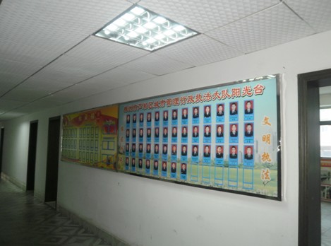今年,芦淞区城管大队加强了文化建设,开展军事训练,文体活动,注重宣传。6月进一步完善上墙标语,在会议室上墙芦淞城管目标标语;在走廊上墙3块标语,完善“阳光台”、“光荣榜”;在宣传室上墙各种奖励牌匾、锦旗、“创文知识”牌匾、党务公开牌匾等;在各办公室上墙职责、考评表、处罚标准、处罚流程、注意事项;在各片区办公室上墙考评表格,阳光台。