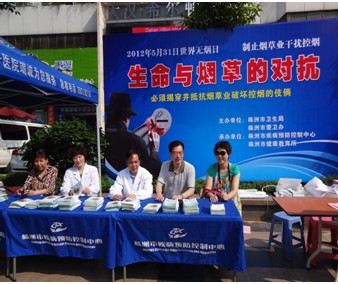 芦淞区疾控中心组织辖区各医疗机构在中心广场开展了主题为“生命与烟草的对抗”的大型控烟宣传活动。