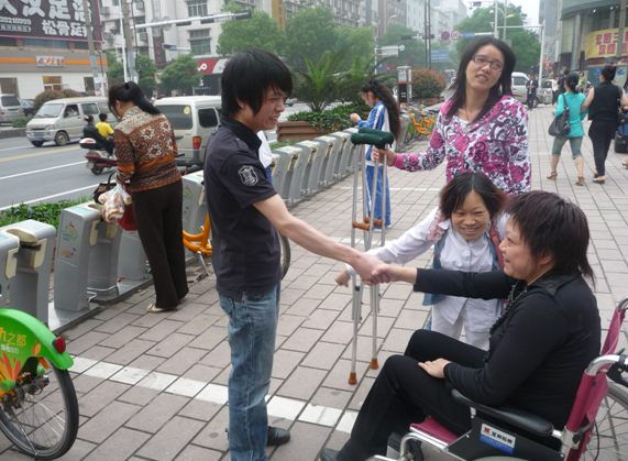 5月12日下午,在区残联工作人员郭强及社区残协专职委员的陪同下,受益的残疾朋友郭建初坐上了崭新的轮椅,她热泪盈眶激动地握住李先生的手,哽咽着说:“从2007年因髕骨损坏,下身行动不便,成了一名残疾人后一直没有出过门。这下有了轮椅,我可以自己慢慢地推着出去走走。谢谢,谢谢!你真是好人啊!…”临走,李先生夫妻俩还嘱咐受益残疾朋友要注意正确使用轮椅,注意安全,安慰残疾朋友一定要好好的生活,要注意合理锻炼和休息,可以推着轮椅亲眼游览株洲日新月异的变化,切实体会下株洲新城经济快速的发展。