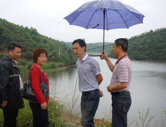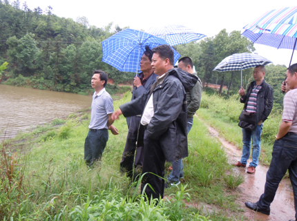 5月14日下午,区残联理事长邓国成同志召集市场管理局、检察院的相关领导,在姚家坝乡、村干部的陪同下,冒雨赶赴稍岗铺村和南田桥村,现场察看寺冲水库和罗新堂水库两个责任水库的汛情。市场管理局局长过德文同志穿着雨靴,打着雨伞进行现场指挥。