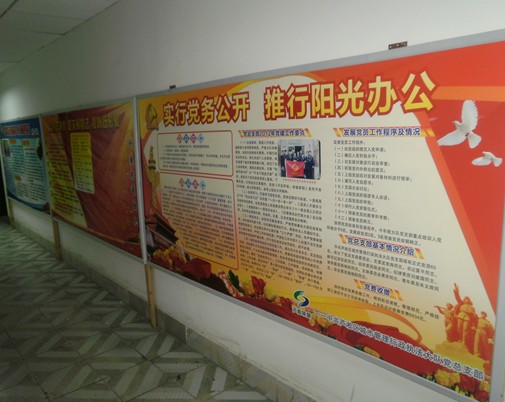 今年,城管大队党总支党务公开栏主要设置了党员权利、党员义务、2012年党建工作要点,发展新党员程序,党总支情况介绍、支部成员名单、党费收缴情况等七大板块,并公布了监督电话。
