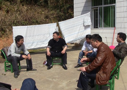 区人口计生局长易树平带领局一班人来到姚家坝乡田心村,并与村党支部书记张群先、村主任黄志辉等村支两委干部亲切交谈。