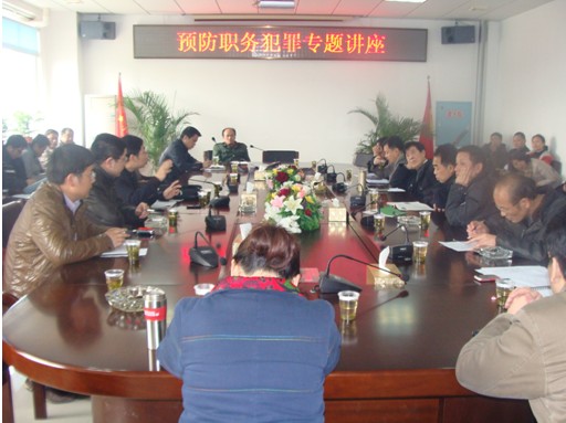 在预防知识讲座会上,检察院刘科长从预防职务犯罪的法律依据、主要概念、职务犯罪的特点和危害、当前人们对预防职务犯罪不正确的认识,以及城建系统如何开展预防职务犯罪工作等方面作了具体阐述和讲解。并通过用鲜活的案例分析了当前反腐败总体形势和现阶段腐败现象的特点,用大量的数据分析了为什么在不断加大反腐败力度的情况下,腐败现象仍然呈蔓延趋势的原因,最后就城建系统如何预防职务犯罪作了详细而精辟的陈述。