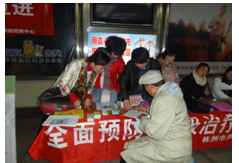 活动现场,医务人员佩戴红丝带向过往群众发放宣传资料和安全套,详细讲解艾滋病防治政策和防治知识,耐心回答群众的提问。株洲市卫生局廖社庚局长亲临活动现场,株洲日报、株洲电视台也进行了跟踪报道。