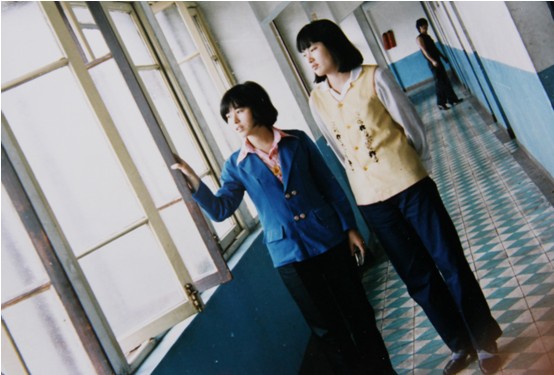 第三张照片:这是一张普通的生活照,这是与闺中密友赵文芳的合影。照片中,我内穿长袖衬衣,外穿灯芯绒马褂,裤子是一条蓝色的的确良;好友赵文芳身着衬衣,外穿一件有双排扣的蓝色的确良……这是当时最时髦的打扮,而蓝色也是衣物里最普遍的颜色。