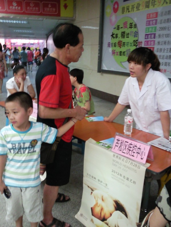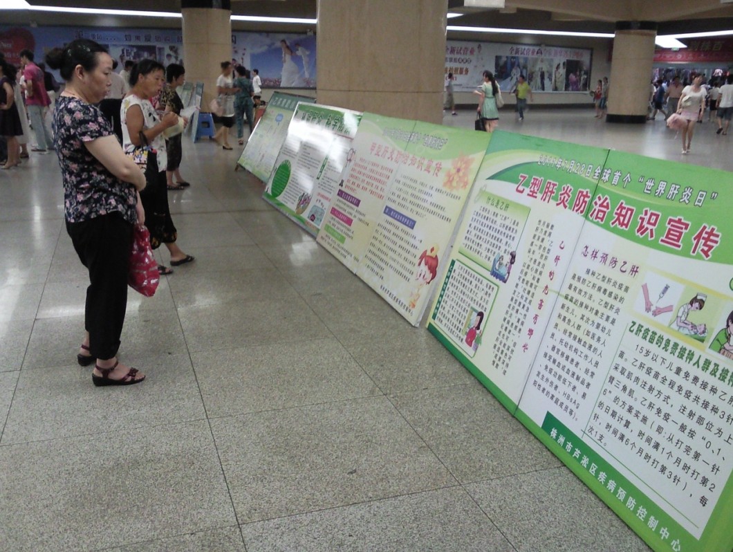今年的7月28日是世界卫生组织确定的首个病毒性肝炎宣传日。芦淞区疾控中心组织湖南省直中医院、市一医院的肝病防治专家及城区各预防接种单位在市中心广场地下厅开展了“认识肝炎,科学防治”的主题宣传活动。