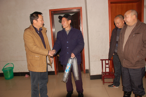 每到一处,领导们都与村民一一握手,详细询问他们的生产和生活情况,仔细了解他们的实际困难,并把慰问品送到他们手中。