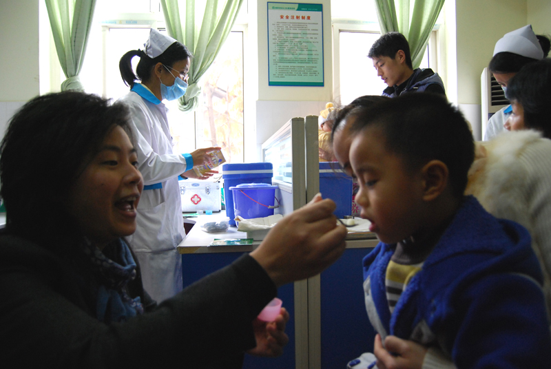 副区长程轶辉为适龄儿童喂服脊灰糖丸