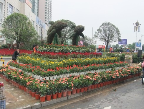 根据市、区的统一安排部署,区城建局组织绿淞园林公司在中心广场、区政府门口、天元桥东、七一路、火车站天桥、七一路天桥、九天广场等区域主要广场摆放时令花草共计20万余盆。品种有国庆菊、孔雀草、一串红、鸡冠花、黄金宝塔、龙泉草、长春花等。中心广场摆放了花柱、花球、花架并在花台上摆放了绿色"海豚"。区政府门口沿线桂花树挂满了满天星,红卫桥头樟树挂满了流星雨。中心广场交通岛铺满满天星,电信大楼门前樟树、桂花树也进行了满天星(2000多串)和流星雨(1500余根)的装饰,从而进一步美化亮化城市,丰富城市夜景,营造了快乐、祥和的"十一"节日气氛。