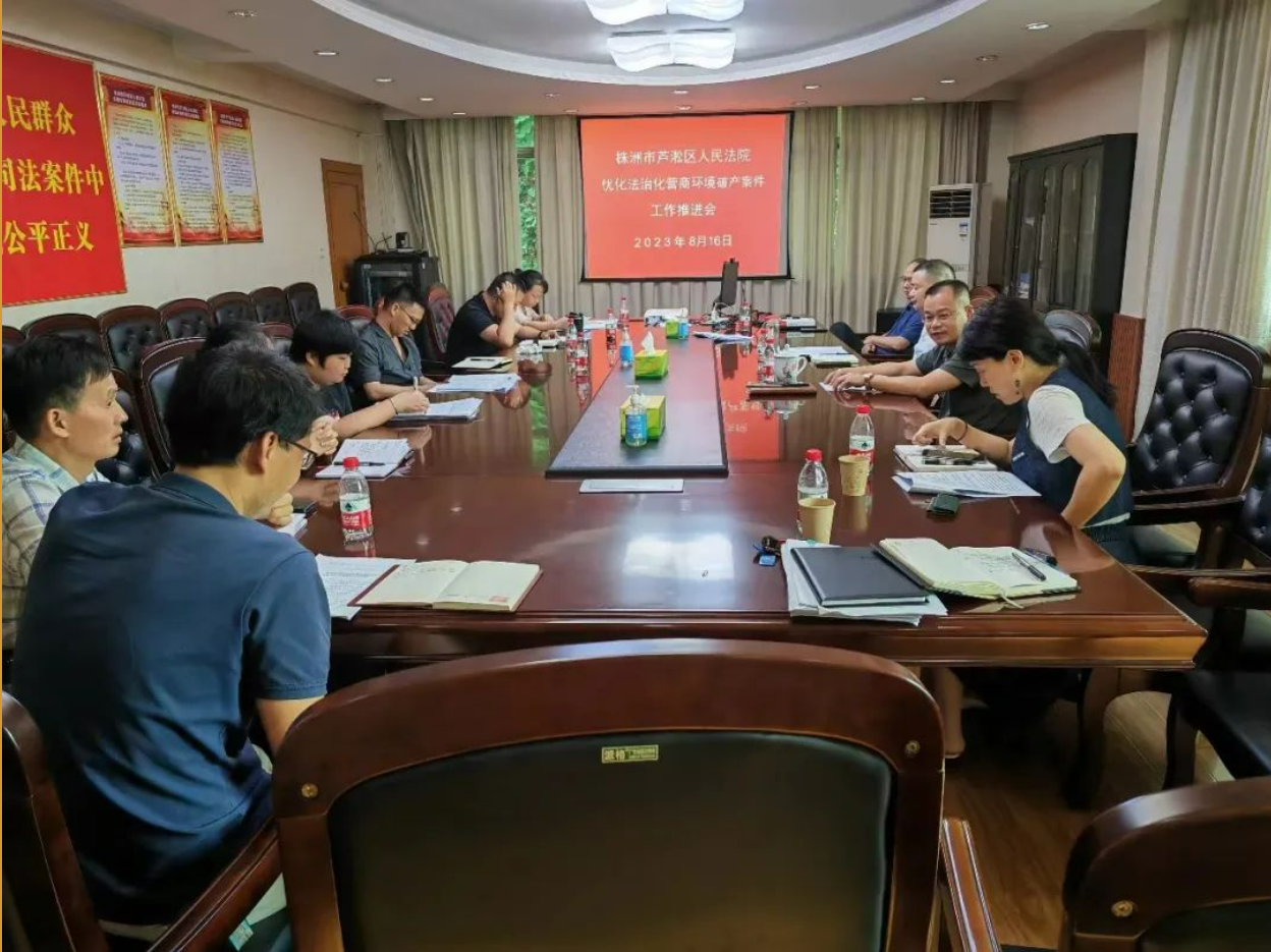 8月16日,芦淞法院召开优化法治化营商环境破产案件工作会议。会上,民事审判庭破产合议庭,执行局,司法技术部门分别汇报了今年全院普通破产案件,执转破工作,以及管理人选任,破产案件资产评估等的工作进展情况。