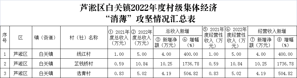 附:《芦淞区白关镇2022年度村级集体经济“消薄”攻坚情况汇总表》