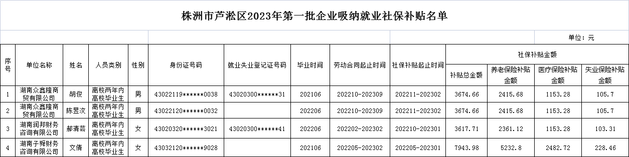 附件:株洲市芦淞区2023年第一批企业吸纳就业社保补贴公示名单
