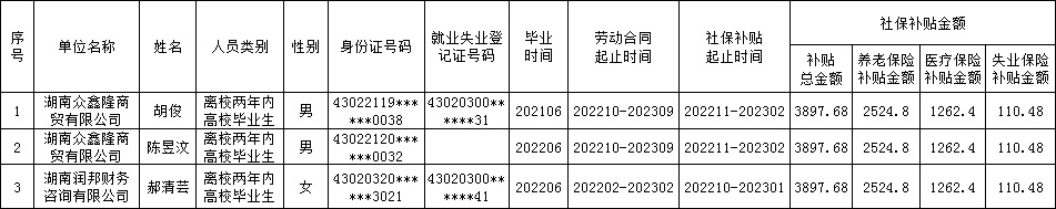 附件:株洲市芦淞区2023年第二批企业吸纳就业社保补贴公示名单