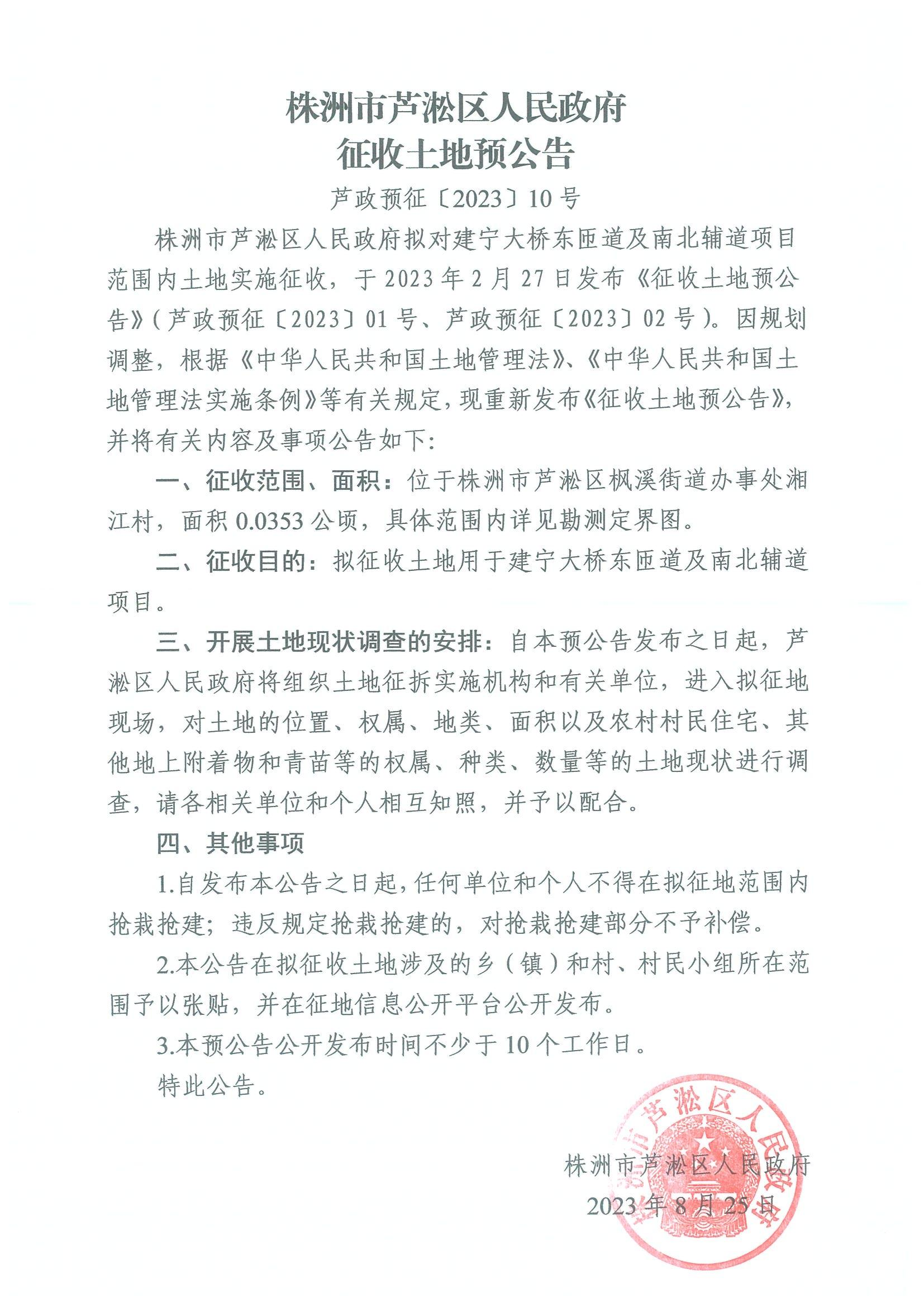 株洲市芦淞区人民政府征收土地预公告(芦政预征〔2023〕10号)