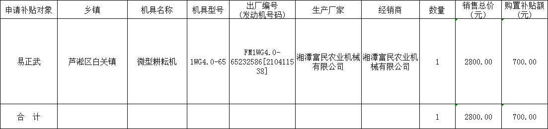 根据《湖南省农业农村厅、湖南省财政厅关于农业机械购置补贴资金使用管理暂行办法》和《湖南省2021-2023年农业机械购置补贴实施方案》(湘农联〔2021〕54号)要求,现将湖南省农机购置补贴2023年第1批次情况进行公示如下: