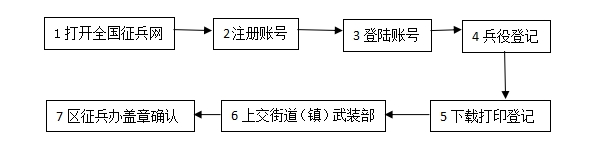 3.领取兵役登记证。完成初次兵役登记的适龄公民,下载打印《男性公民兵役登记/应征报名表》及存根,填写《公民兵役证》申领表,连同身份证复印件(正反面复印在一张纸上)上交到户籍所在街道(镇)武装部(在校学生交给学校负责兵役工作的老师),由各街道(镇)武装部或学校负责兵役工作的部门统一到区人武部办理《公民兵役登记证》。公民兵役登记站是适龄公民履行兵役义务的有效凭证,不得伪造、涂改或转借。