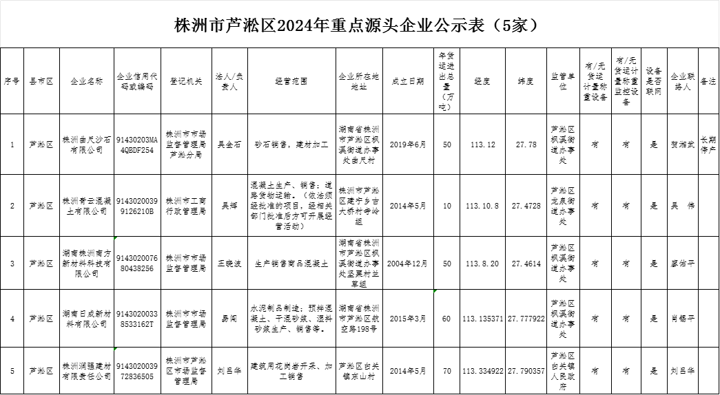 株洲市芦淞区2024年交通运输重点源头企业公示