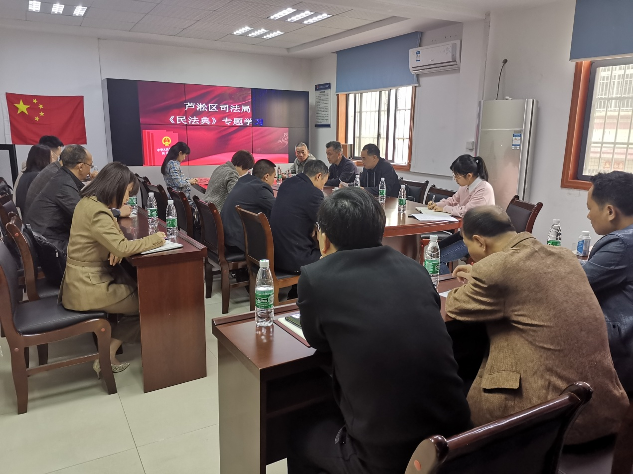 为深入推进《中华人民共和国民法典》的贯彻落实,努力营造全局干警学法、守法、用法的浓厚氛围,推动学法与工作有机结合,3月26日,芦淞区司法局开展民法典专题学习活动,全面认识这部新中国成立以来第一部以“法典”命名的法律。