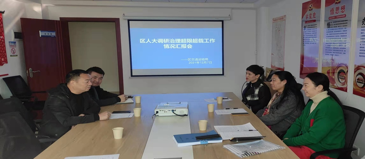 12月7日上午,区人大常委会副主任段可文率区人大常委会农业委及专业小组代表,深入区交通运输局就全区货运车辆超限超载治理工作进行专题调研。区人大常委会农业和农村委员会主任李艳陪同调研。
