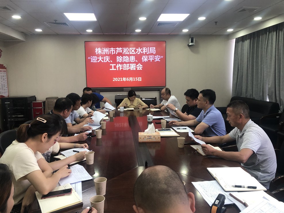 6月15日上午,芦淞区水利局召开“迎大庆、除隐患、保平安”工作部署会,传达学习习近平总书记对湖北十堰市张湾区艳湖社区集贸市场燃气爆炸事故作出重要指示,研究部署下一步工作。局党组书记黄永立主持会议,区水利局全体机关干部职工参加会议。