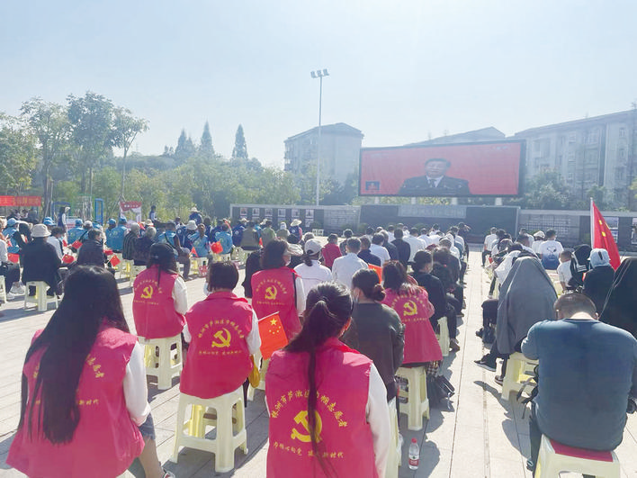 10月19日,记者来到公园广场上看到,这里花团锦簇,映入眼帘的是一面展览墙。墙上面的巨大屏幕,播放着习近平总书记作党的二十大报告画面,不少市民驻足观看,认真聆听。墙的左边记载了习近平总书记近年来走访大江山河的足迹,心系水情的心声:“每条河流要有河长”“守护好一江碧水”“深入贯彻绿水青山就是金山银山的理念,把生态治理和发展特色产业有机结合起来,走出一条生态和经济协调发展、人与自然和谐共生之路”……一句句殷殷嘱托承载着对大自然的敬畏,对河湖保护的期望和要求,对老百姓生态福祉的挂念。墙的右侧展示的是芦淞区河长制近五年的成果,治水之道、治水之路、治水之效、治水之声,一条条治水举措、一张张水美图片,一句句市民之声,反映着河长制工作的有名、有实、有力、有效,记载了枫溪港的蝶变成效和老百姓的满意度。