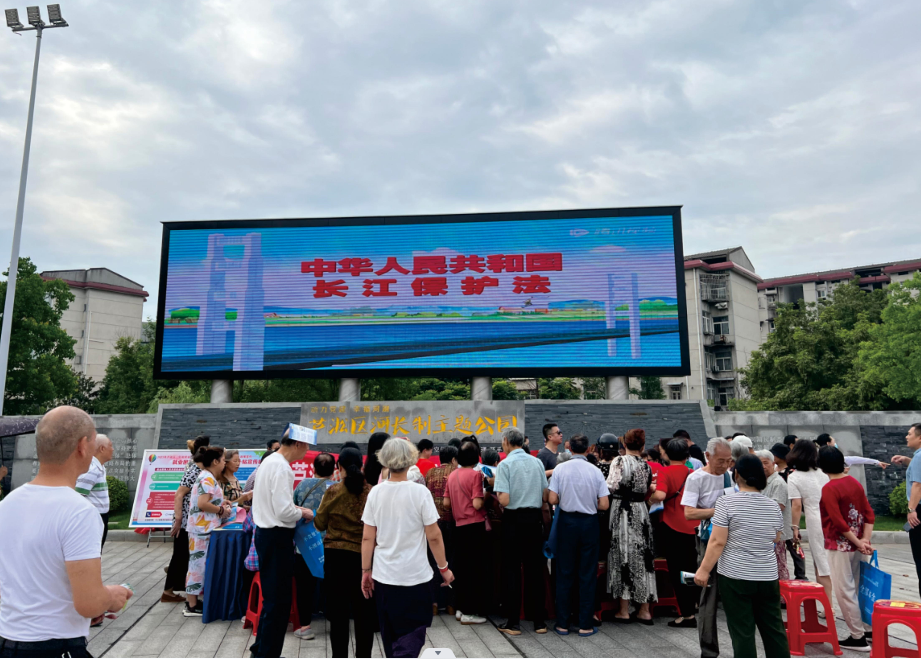 活动现场为群众发放《中华人民共和国长江保护法》等宣传册500余份,以面对面普法、悬挂横幅、发放普法资料、提供法律咨询等多种形式,向周边群众宣传《长江保护法》的立法背景、重要意义、重点法律条文,对在禁捕区捕鱼作法律解释说明,引导群众关注环境问题,号召群众积极参与到河流“大保护”的工作中来,以实际行动保护生态安全。