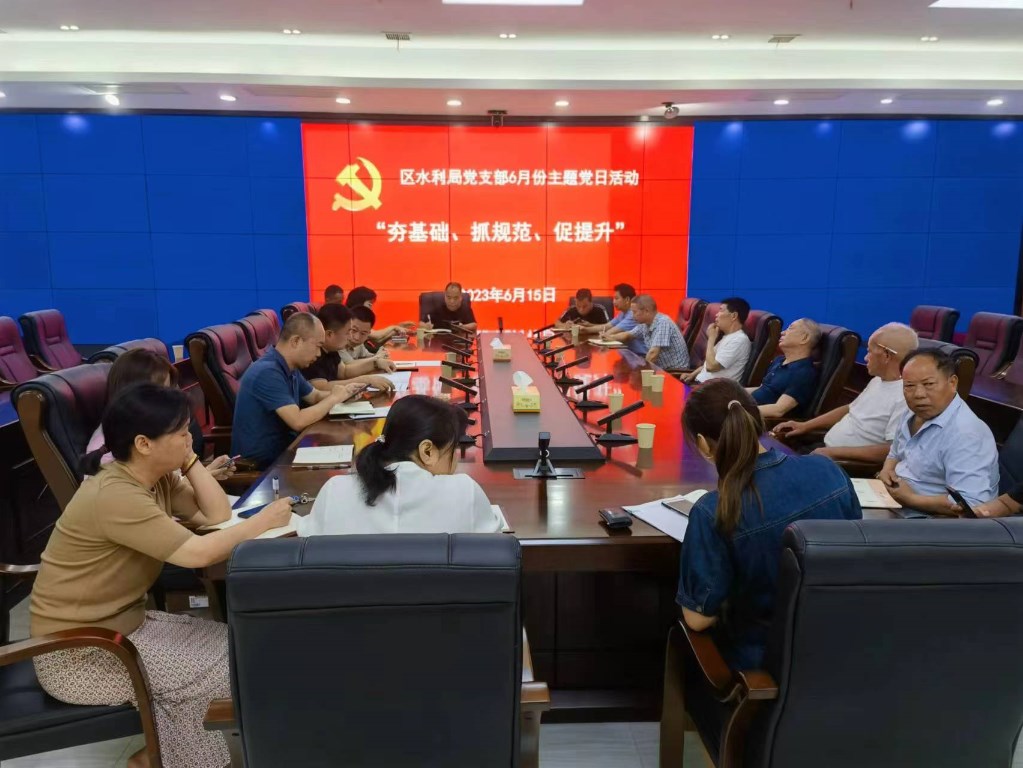6月15日下午,水利局开展“夯基础、抓规范、促提升”主题党日活动,学习了近期习近平总书记的重要讲话。开展了 “河”父亲一起话幸福河湖座谈会。全体党员干部、退休老党员参加会议。