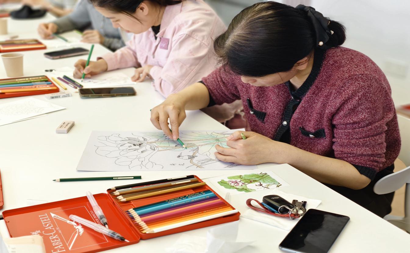 课程融合彩铅与国画,涵盖基础技法与创作理念,让学员领略不同绘画形式的魅力。杨老师教学经验丰富,讲解生动,注重互动,根据学员特点给予个性化指导,学员绘画水平显著提升,培训结束时展示出众多优秀作品。学员学习热情高,课堂活跃,大家相互交流学习,结交朋友,丰富了精神文化生活。