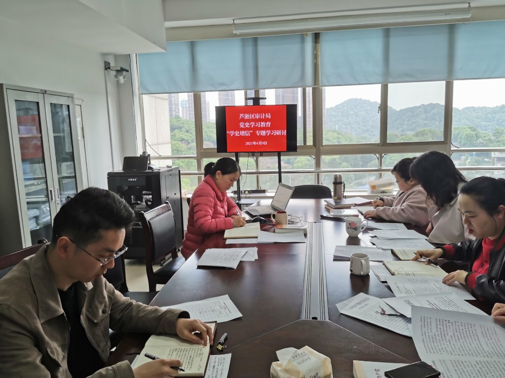 为扎实开展党史学习教育,2021年4月9日,芦淞区审计局召开党组理论学习中心组扩大会暨党支部主题党日会议,围绕“学史增信”主题开展第二次专题学习研讨,全体党员参会。